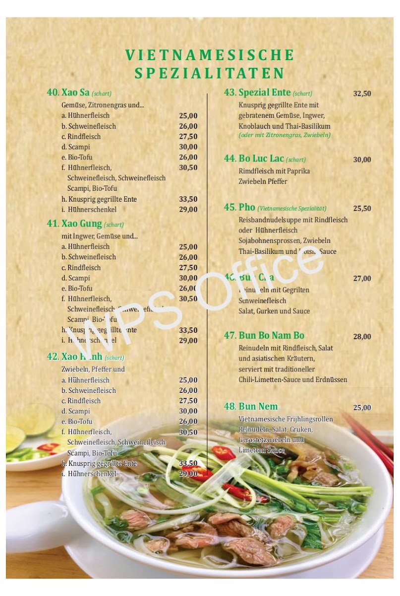 Vietthai Restaurant in Brunnen offers a menu that artfully balances the vibrant flavors of Vietnamese and Thai cuisine. Highlights include the crispy and savory Ente Gebacken, a standout dish that perfectly combines tender duck with a golden, crunchy exterior, leaving a lasting impression on the palate. The menu also features a variety of fresh spring rolls, aromatic curries, and fragrant noodle dishes, each thoughtfully seasoned to capture authentic Southeast Asian tastes. Accompaniments such as tangy dipping sauces and lightly spiced broths enhance the overall dining experience, demonstrating careful attention to flavor layering. Portions are generous, presentation is inviting, and the dishes maintain a satisfying harmony of textures and aromas, making each selection, especially Ente Gebacken, a memorable choice that reflects the restaurant’s commitment to quality and authenticity.